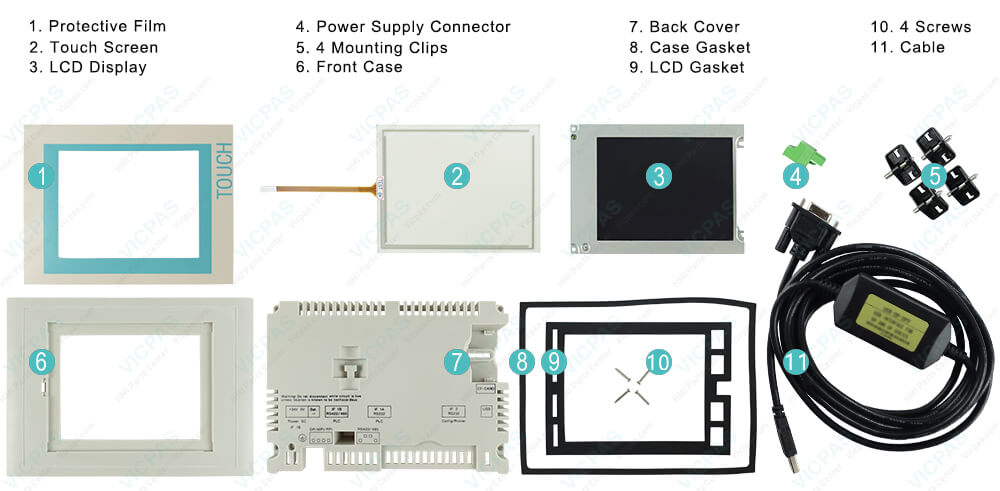 VICPAS supply 6AV6545-0CA10-0AX0 Siemens TP270 touch panel, Overlay, Mounting Clips, HMI Case, Power Supply Connector, Case Gasket, LCD Gasket, Screws, Cable and LCD display. All of them with VICPAS 365-day warranty and support Urgent Worldwide Shipping.